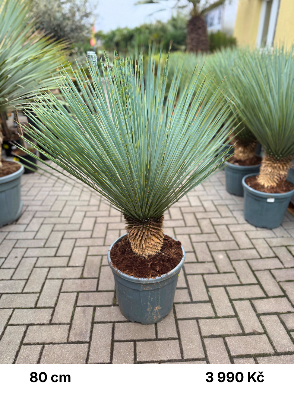 Výška a cena rostlin se v průběhu roku může lišit. Současnou nabídku dostupných rostlin v České republice naleznete vždy zde: Yucca rostrata skladem, a nebo nám pošlete poptávkový formulář s vašimi požadavky a my se Vám co nejdříve ozveme a specifikujeme jaké rostliny jsou nyní k dispozici. Pokud jste zahradní architekt, zahradník či velkobchodní zákazník, jsme schopni vám nabídnout na tuto Yuccu výhodnější cenu.