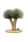 Vytváří solitérní kmen, zakončený hustou kulovitou korunou modrostříbrné barvy. Korunu tvoří jednotlivé úzké listy, zakončené špičkou. Kořeny rostliny se přizpůsobí jakémukoli prostoru